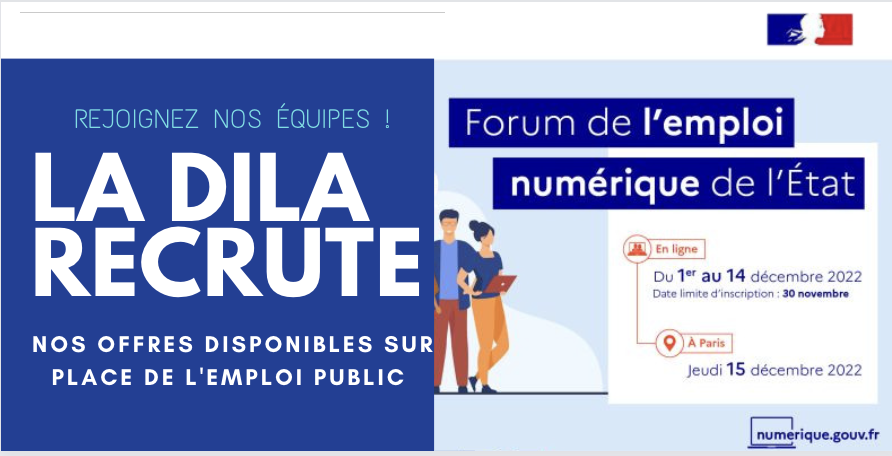 FORUM DE L’EMPLOI TECH DE L’ÉTAT : La DILA RECRUTE 11 TALENTS DU NUMÉRIQUE Pour réussir sa transformation et...