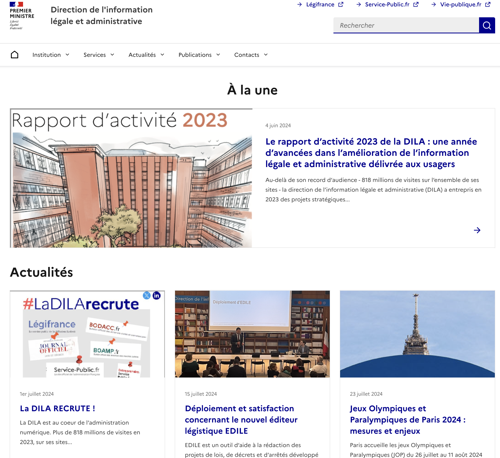 Toute la DILA en un coup d’oeil : Journal officiel, Légifrance, Service-public.fr, Entreprendre.service-public.fr, Vie-publique.fr et La Documentation française.